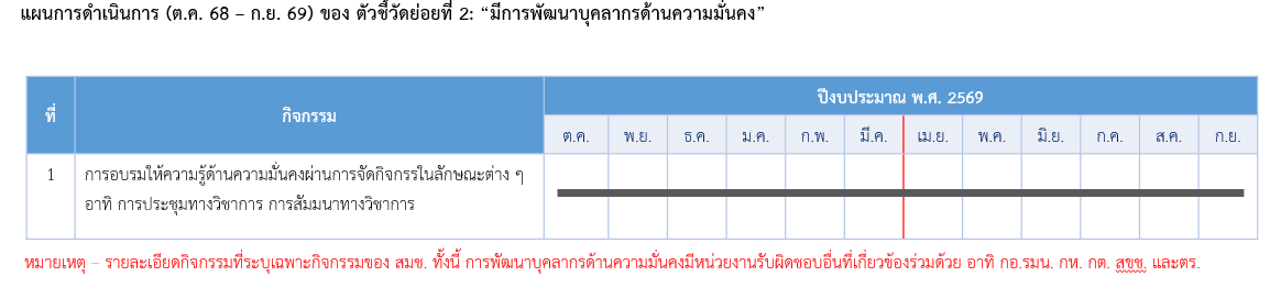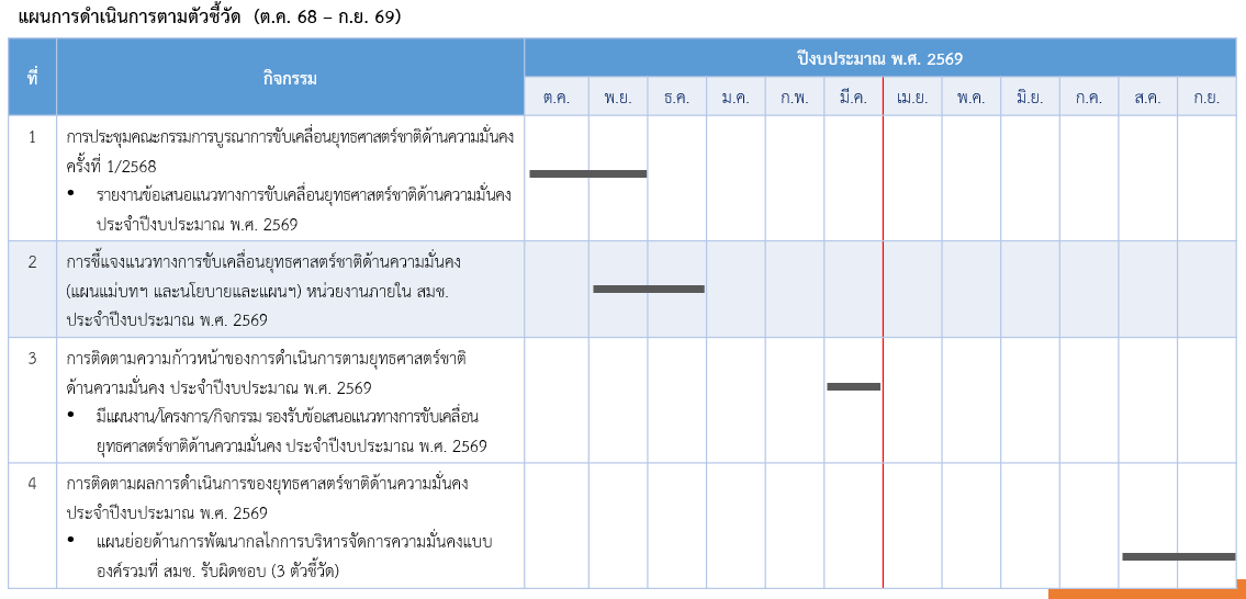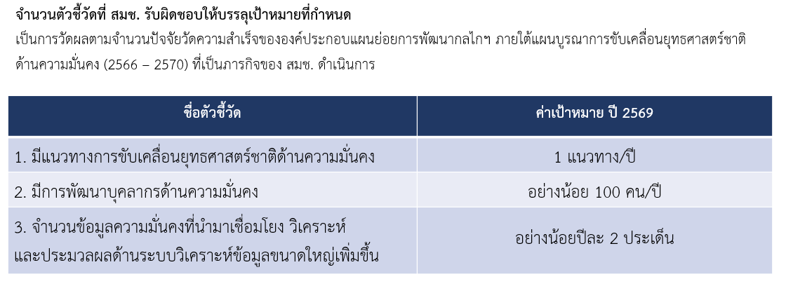 ผู้รับผิดชอบการรายงานผล : สำนักงานสภาความมั่นคงแห่งชาติ