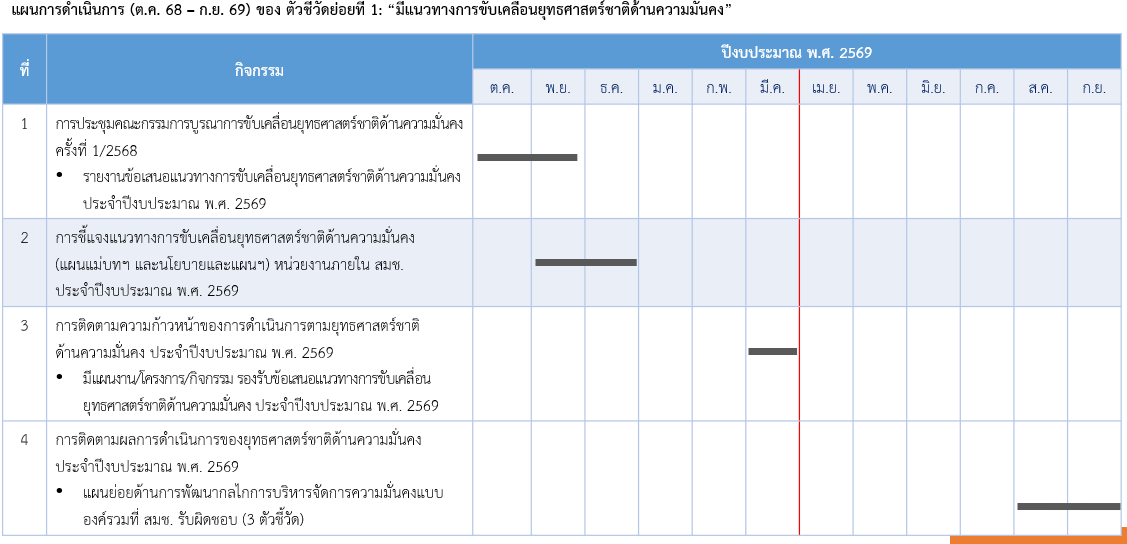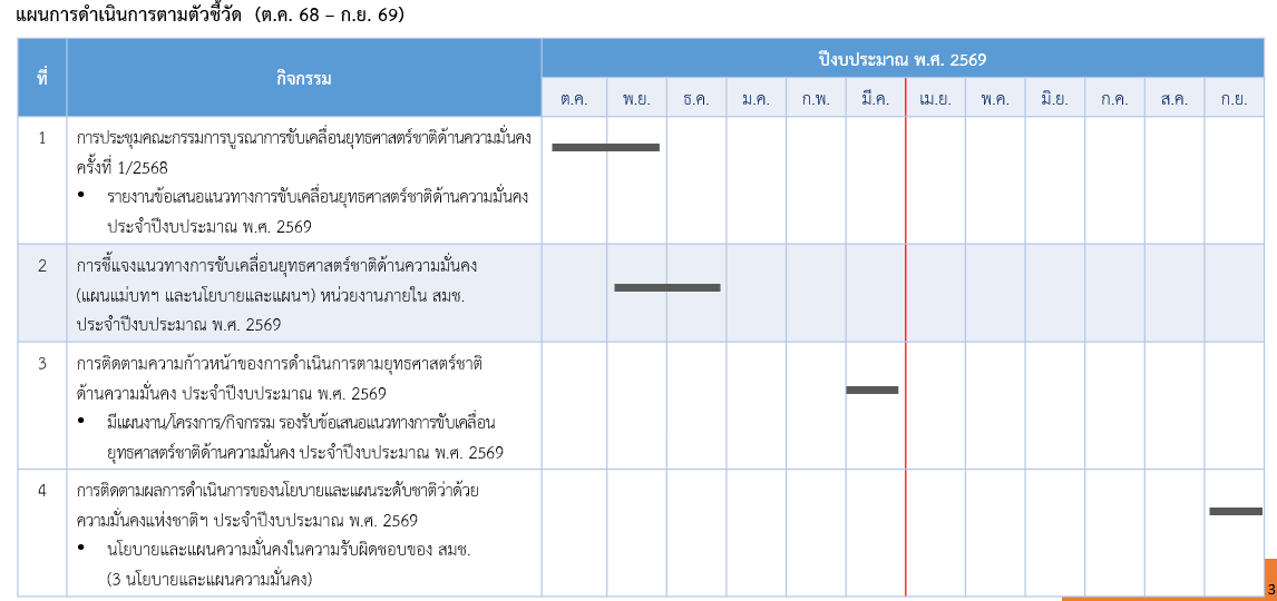 | มีการรายงานข้อเสนอแนวทางการขับเคลื่อนยุทธศาสตร์ชาติด้านความมั่นคง ประจำปีงบประมาณ พ.ศ. 2569 เสนอคณะกรรมการบูรณาการขับเคลื่อนยุทธศาสตร์ชาติด้านความมั่นคง | ไม่ผ่าน |