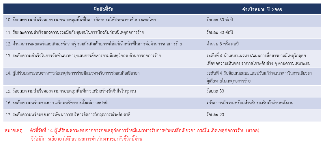ได้กำหนดค่าเป้าหมายจำนวนเหตุการณ์ความรุนแรงโดยเทียบกับปีฐานในปีงบประมาณ พ.ศ. 2560 เป็นหลัก (166 เหตุการณ์)