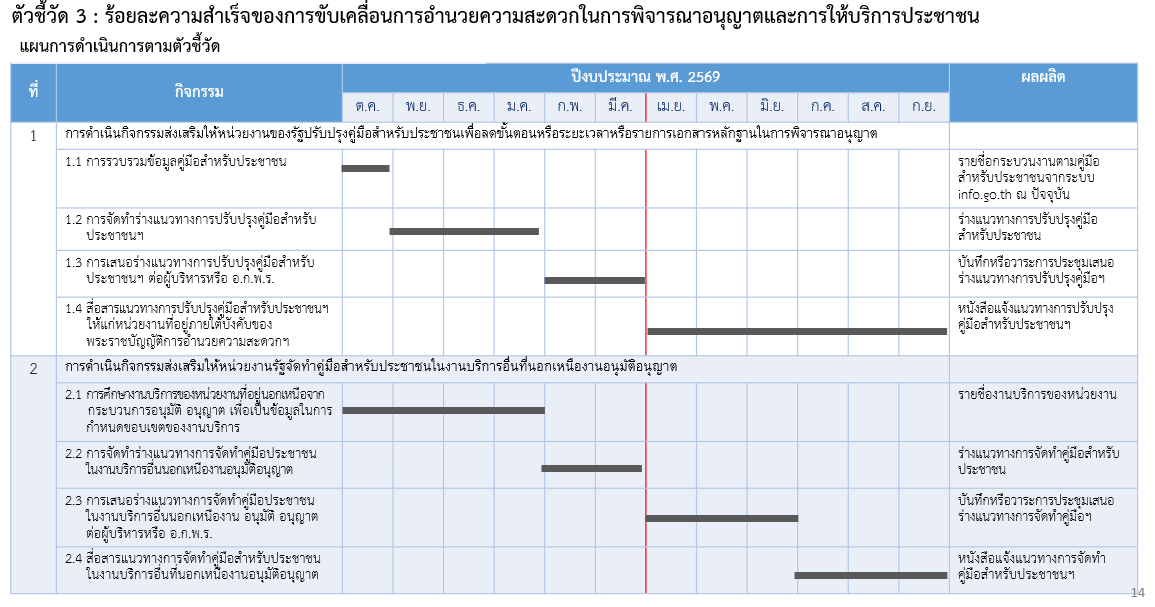 1. การดำเนินกิจกรรมส่งเสริมให้หน่วยงานของรัฐปรับปรุงคู่มือสำหรับประชาชนเพื่อลดขั้นตอนหรือระยะเวลาหรือรายการเอกสารหลักฐานในการพิจารณาอนุญาต